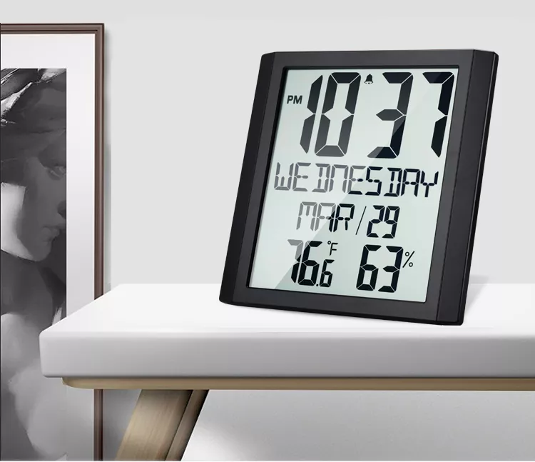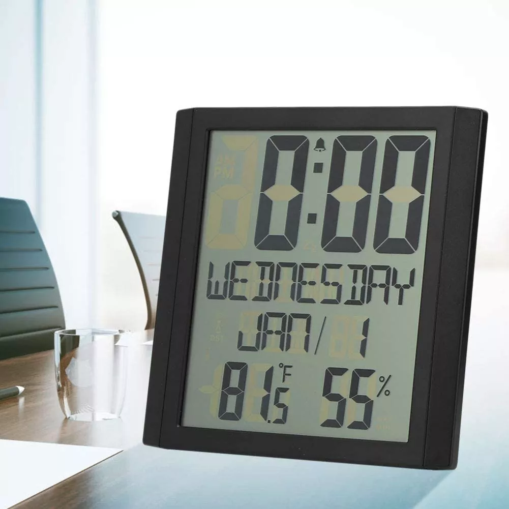 7. Relógio de parede com calendário e display digital de fonte grande de 8,6 polegadas