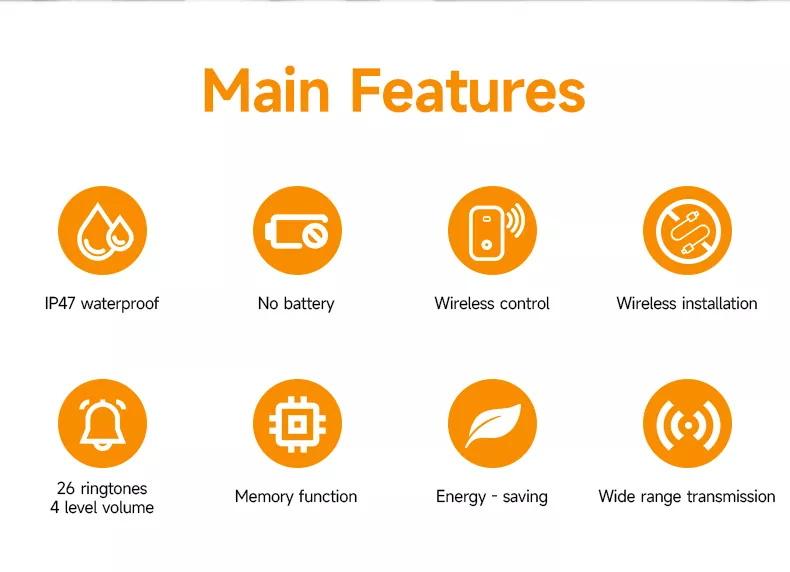 7. campainha com função de memória de chip para memorizar o toque e o conjunto de volumes;