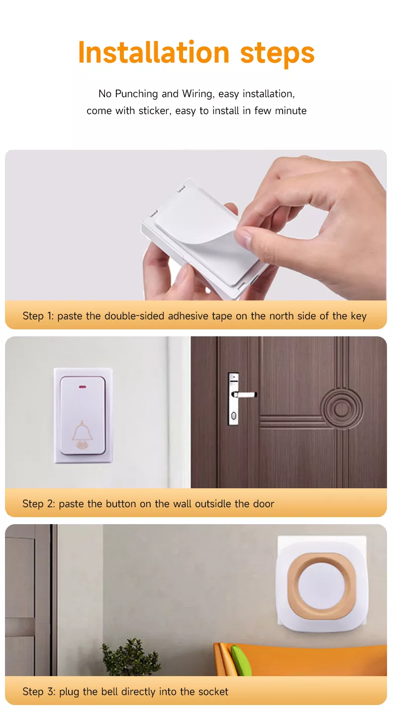 2. A faixa de frequência operacional da campainha é de 433,92MHz;