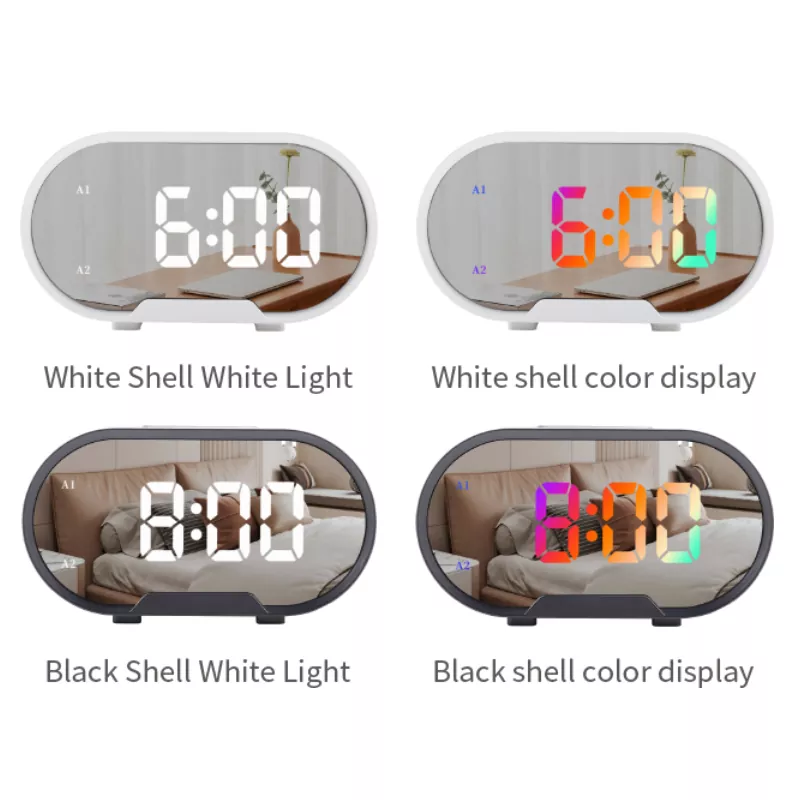 Despertador com espelho de mesa com display colorido LED RGB