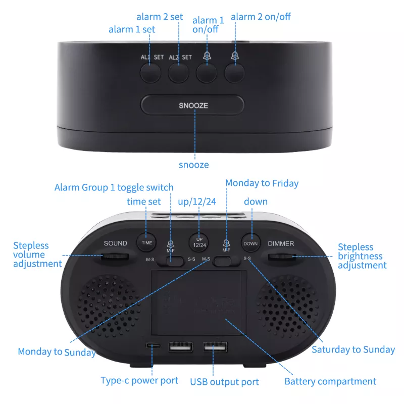 LED Alarmes Duplos Temperatura Luz Noturna Despertador