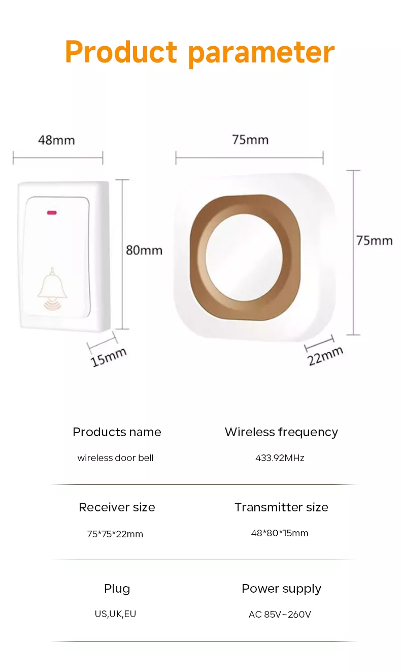 2. A faixa de frequência operacional da campainha é de 433,92MHz;